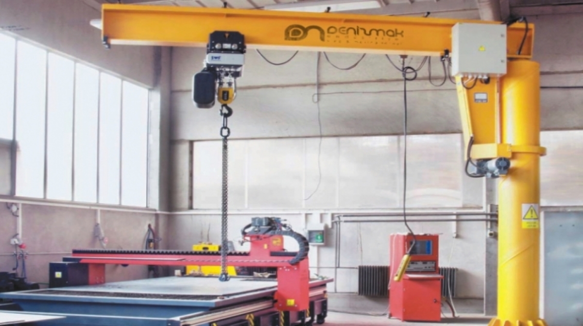 Özel makinalara malzeme yükleme ve boşaltma, imalat alanlarının dar ve kısıtlı olduğu yerlerde tercih edilmektedir. Pergel şaklindeki dönüş, manuel veya elektrikli olarak da yapılabilmektedir.